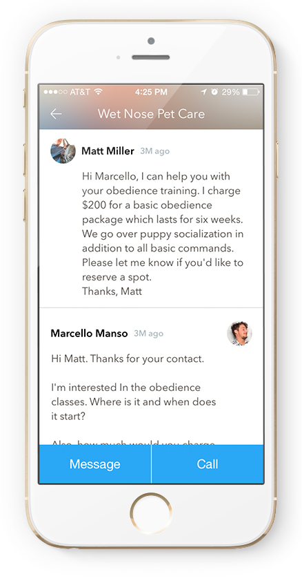 Choosing can be overwhelming. By highlighting what’s important and making the quote and profile easy to scan, we help the customers compare their options and feel confident they’re hiring the best professional. The sticky CTAs Message and Call also give a hint on what the customer should do next.