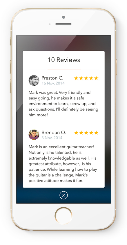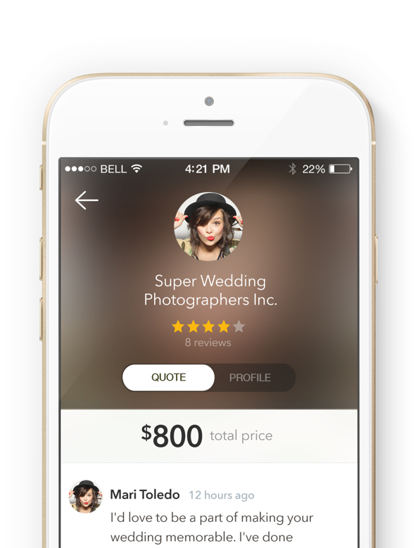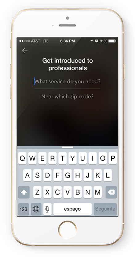 I want the app to open up with a series of short movies showing different consumers and professionals working together: a wedding photographer, a personal trainer, a piano teacher and maybe others. It’s a subtle way to inspire the users and communicate what can be accomplished with Thumbtack.