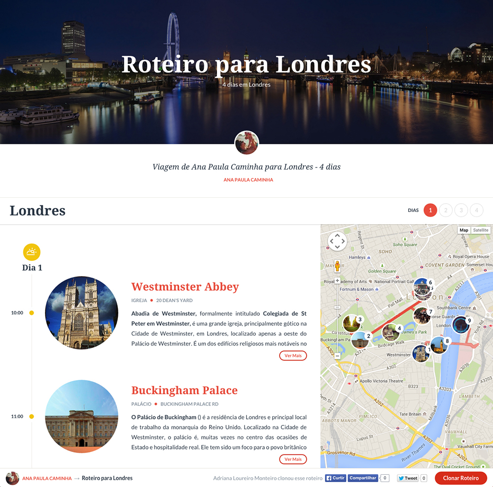 A personal project for the brazilian market. People can create their own travel plans or clone somebody else's. I've done the design and front-end code.